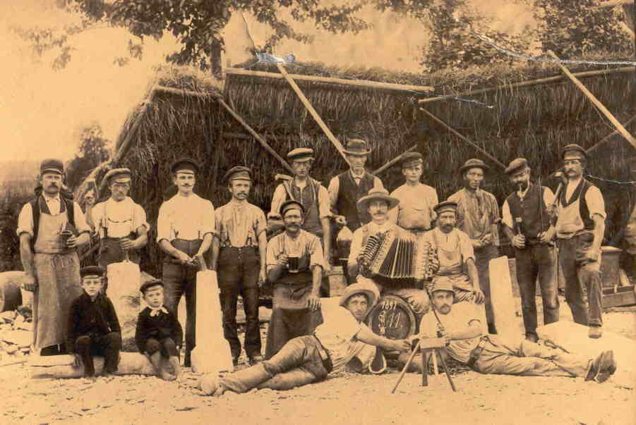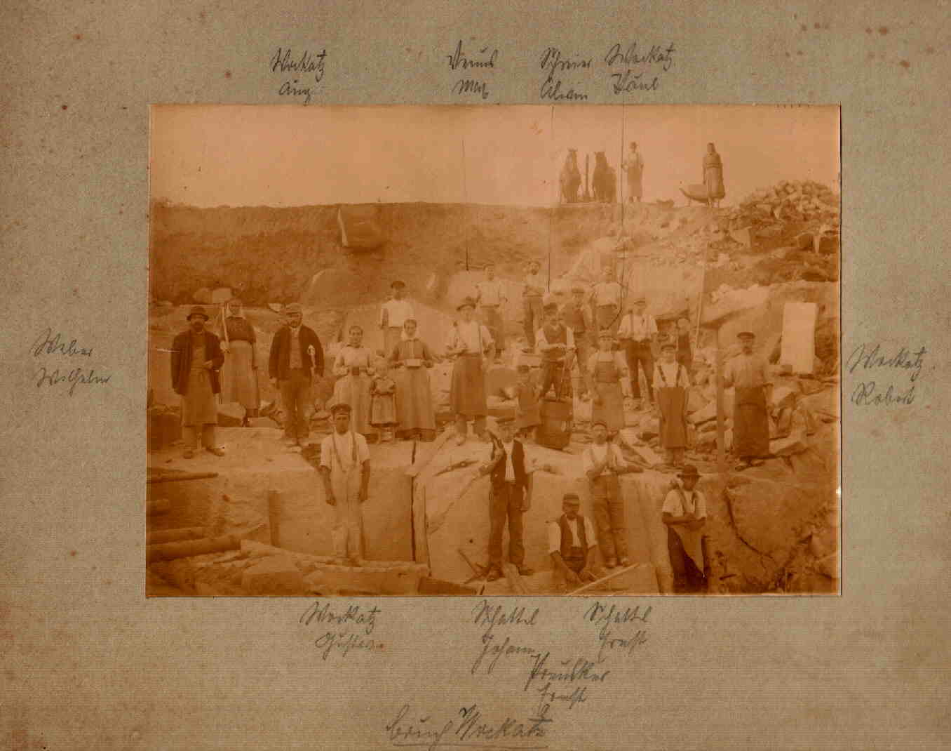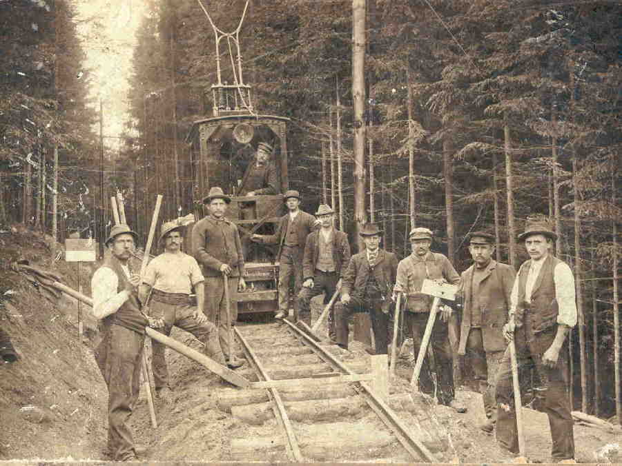 Techniker Alwin Baumann (+1934), Schachtmeister Karl Braun, Lok-Führer Sieber (+1947), Weichensteller Möbius