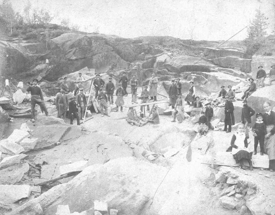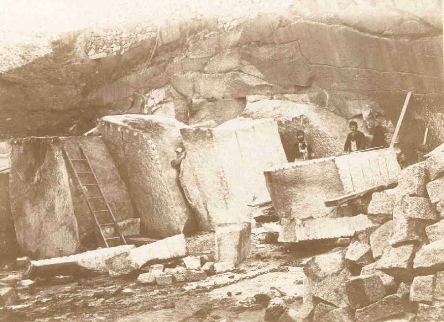 Ein Steinmetz beim Herstellen eines Bordsteines aus Granit